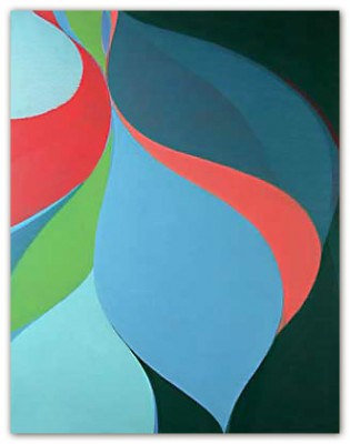 I work intuitively with no prearranged sketches or plan. I am interested in inventing shape and layering color. I am compelled to follow an edge to see where it can reside in an interesting way. This involves risk as one exploration may lead to new discoveries while another to complete dissolution. I set up problems or unlikely juxtapositions and then try to resolve the conflicts I see through the painting process. Generally my ideas are one step ahead of what I am capable of achieving, so that I am continually drawn ahead to future possibilities.
