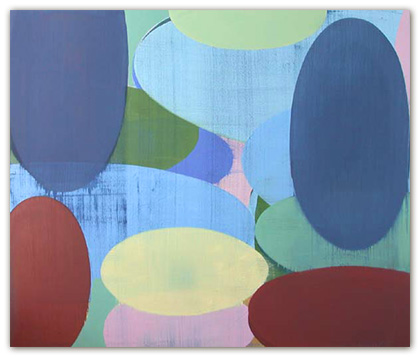 My work emerges from an engagement with my materials and is concerned with neither narrative nor image. The medium becomes the vehicle for transient, but ever-present tensions that seek their resolution through painting. I am interested in using a system of organically derived circular shapes within the rectangular format of the picture plane. I like to investigate the tensions inherent in positive and negative interplay as well as shapes that appear and disappear beneath the surface of the picture plane.