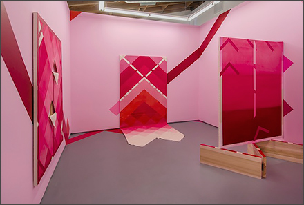 Most of my series have implicit connections to my native country, Venezuela, where oil production made the promise of modernism more tangible and its failure more poignant than elsewhere in Latin America. I ruminate on the future of abstraction while glancing back at Venezuela’s collapsed modernist project—its chromatic remains—through the fracturing prism of contemporary conditions.