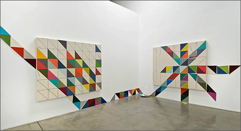 I work with paint, paper, ink, slides, spices, UPC codes and vinyl tape. But my favored material is paradox: the promise and perils of utopian abstraction, political formalisms, universal specificities, and the underlying order of chaos.