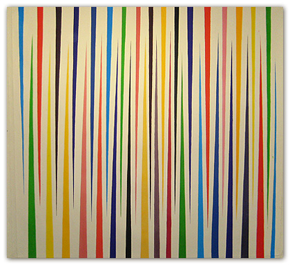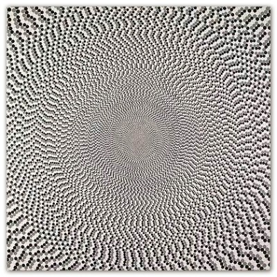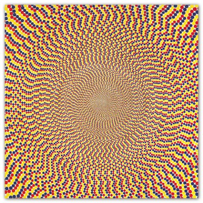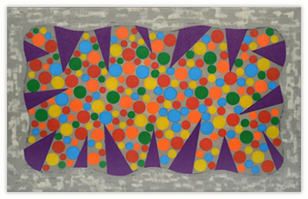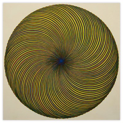 My most recent work continues to reference the techniques of Color field painting, logocentric design and spherical transcendental configurations, taking pure opticality, minimalism and geometric sequence to a logical and overwhelming conclusion.