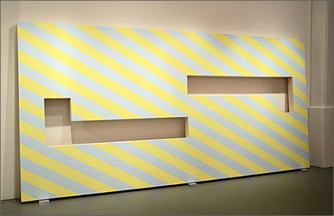 My paintings engage familiar tropes of geometric painting and supergraphics—dots, stripes, sine curves, and systematic progressions—often taking them to extremes of physical practice. A series of dizzying spiral paintings of dots requires such a great deal of time and effort to produce, I look at them as Herculean tasks. I do, however, find as much play as work in their creation.