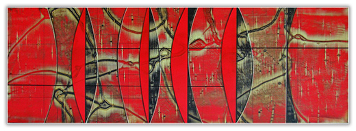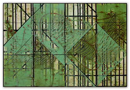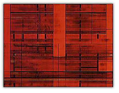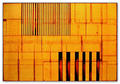 The process involves the application of many layers of marks and skins. A sandwich of information is built up to reveal the passage of time and its own creation. Structures both organic and geometric are laid down under and between translucent skins of paint. These skins are applied with a variety of trowel-like tools I’ve invented or adapted. The pressure used during the application of a skin determines the degree to which the underlying structures and gestures appear or disappear. Much of the initial painting is buried beneath subsequent layers of paint, but remains visible to varying degrees.