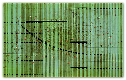There is very little planning involved with the work. It is an intuitive procedure like a kind of “call-and-response” whereby each new set of marks or skins is a response to the previous set. Throughout the development of the work, this constellation of visual information goes through a metamorphosis and transitions through many varied states. In the end what is left is a kind of record of this transformative journey. In this way the work is improvisatory.