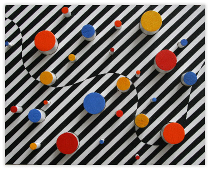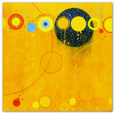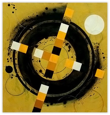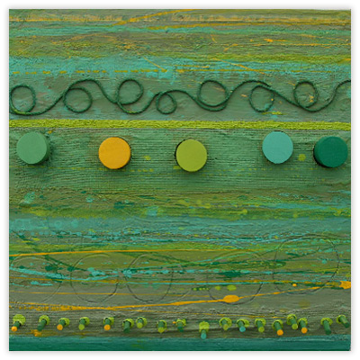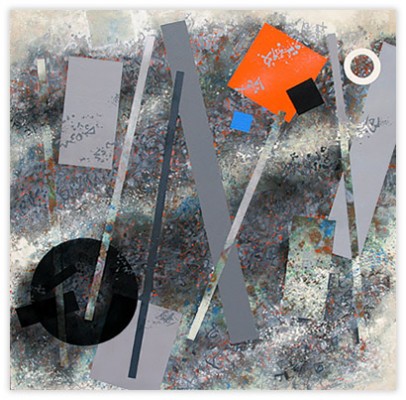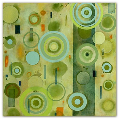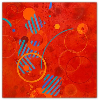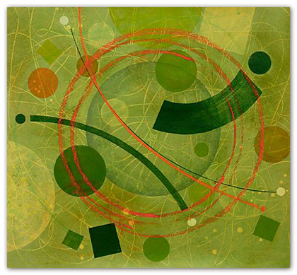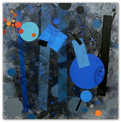 I paint within the conventions of non-objective art using circles, squares, rectangles, and trapezoids to improvise in the spirit of the many different kinds of music and dance that I enjoy. Using these forms, colors, and lines, I aim to stimulate sensations of movement, rhythm, harmony and key. I like to make colors and shapse interact in the same way that sounds and rhythms interact in a musical composition. Fast, slow, buoyant, lyrical or discordant—it’s an intuitive pursuit.