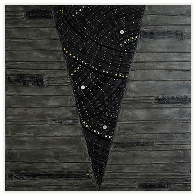 Most of my works also use encaustic, the beeswax paint that adds a sensuous, skin-like surface and muscular dimensionality. Pigment suspended in encaustic reflects light and provides rich, deep color to the work. Encaustic also lets me add a thin, somewhat cloudy surface to some materials I use to give them an appearance of distance or timelessness