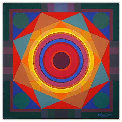 As an artist, I have been influenced by everything I have seen, heard, touched, smelled and felt. It was only after I knew how to paint that I found how much it takes before I reach the point of signing a painting —the ultimate pleasure. Symmetry can be bilateral or dynamic—rigid and well-defined or absolutely fluid. A center becomes a Bindu (point), but it has to have a circumference. Both center and circumference have to interact in my paintings; they are meaningless without each other. When I painted nature I found that everything in it is governed by an order. And the geometry of my paintings was also present in it, but I did not want to copy nature, but rather recreate it. I have wanted to invent, not chronicle. When you are painting, it is karma (work); when you finish, it is a lucky gift.