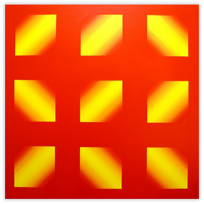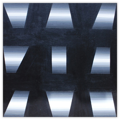 My work was originally concerned with the analysis of kinetics, ratios and related phenomena. The use of installation, film and optics characterized my earlier efforts in this concern. Latterly, I have returned to painting, using a more formal expression of my interest in and preoccupation with a form of “meandering geometry,” as somebody recently described it. These works present an ongoing development in my work, not only literally, but in the modification of the language of each piece. There is a requirement of the audience to “saturate” their consciousness whilst viewing the work, as each one demands a prolonged, almost meditative contemplation in order to adjust to the color and compositional values contained within.