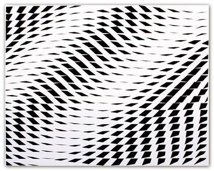 Aesthetically, they are created to respond to the fundamental physiological experience of seeing, comparable to the kinaesthetic response engendered by sound, music, or rhythms. Visually, the work is created in much the same way as musical notation, using stave-like grids onto which I add rhythmic or pulsing annotation or markers which, as in music, coalesce to present an overall piece, which hopefully presents a balanced and coordinated event for the audience.