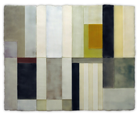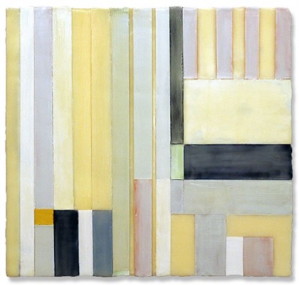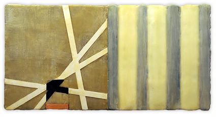 Much of my work involves a play of geometric form that is animated by organic rhythms. I like to think of geometry as representing the logical, rational part of our being, while organic forces, together with color, speak to our emotional core. For me, the way in which these elements interplay touches upon something quite complex and human. In my encaustic paintings, the logic of this geometry is countered or tempered by the sensuality of the wax medium and a fusion of color and light. My process is highly intuitive, and I often draw upon memories of form and color gleaned from walls, windows, machines, doors, shadows and streets and other sources. I use my camera like a sketchbook to record the particulars of my experience—unique moments when light touches a form in a magical way. I’m attracted to subjects which, though once “perfect” in their man-made precision, have subsequently fallen into disrepair through age and neglect—shifting from the modern or postmodern into a primitive state, carrying the wisdom of a long-forgotten tale.
