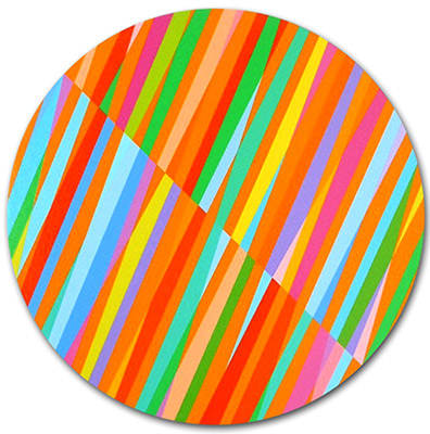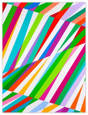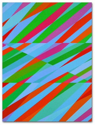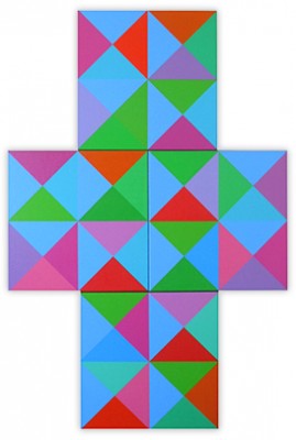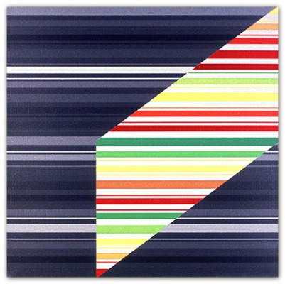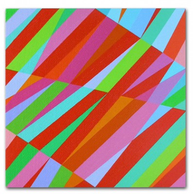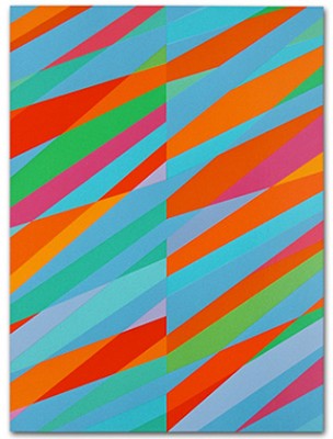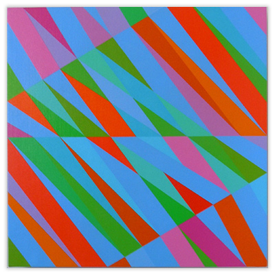 Hence stems my great interest and desire to paint, to think through images and their infinite variants, to search out forms and colors. It is a work that develops in constant experimental, expressive research, with a logical approach to processes, concepts and concrete experiences, with the techniques and language of painting. They are mental images, geometric abstracts, sets of deconstructed and numerically structured signs designed and articulated into multiple scanning routes. Fluctuating signs that interact in a play on the expression of rhythms, spaces, the continuous mutation of colors in a dialectic sequence in the making, with so many different, complex, expressive values. It is a mental voyage that starts over and over, with a great deal of curiosity and “raison d’être,” through a simple play on form and color and from a sort of interior need with the aim of sharing a sense of pleasure and joy in their existence with others.
