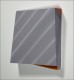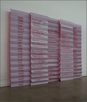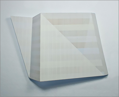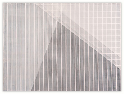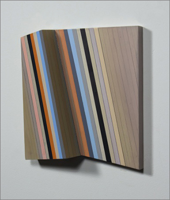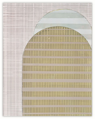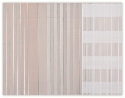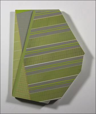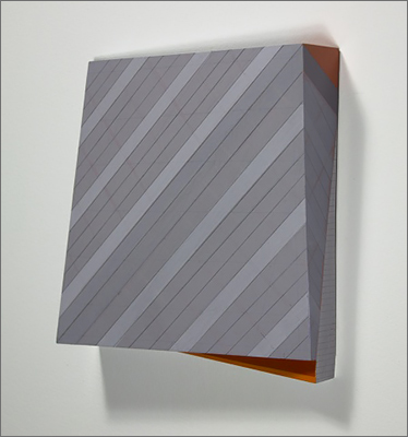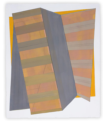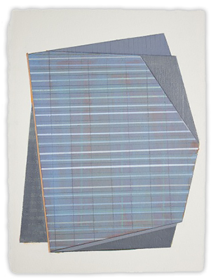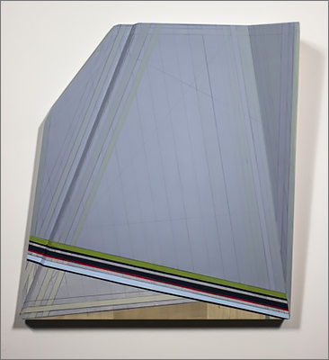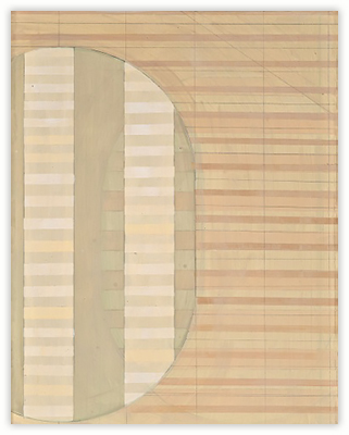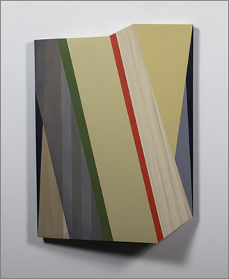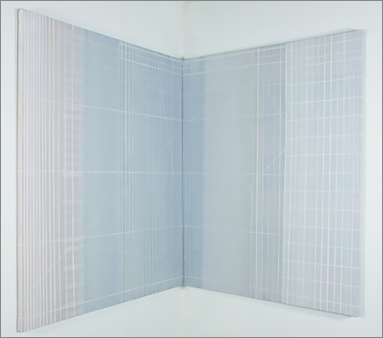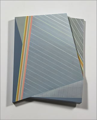 My paintings explore how perception is affected by the interplay of geometry, light and color. I paint on shaped forms to instill a sense of play in my work and to suggest the experience of an interior architectural space. The geometric language of bars, grids and linear repetitions echoes the methodical process I use to create the paintings. These simplified elements, combined with subtle gradations of color, create a play with perception and a vibration between the logical and the poetic.
