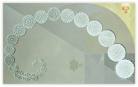 In exploring the patterns that result from running this routine, I join other artist/programmers who find themselves fascinated by their inability to pre-imagine the outcome of a very simple process. Ordinarily the results tend to be symmetrical, but occasionally the outcome is irregular and as unexpected as throwing dice and getting something other than a combination of what was shown on the die faces. That this is possible provides a very small, but solid, piece of evidence that a path entirely constrained by what amounts to a dryly rational, seemingly inflexible boundary can produce real complexity.