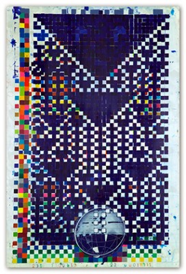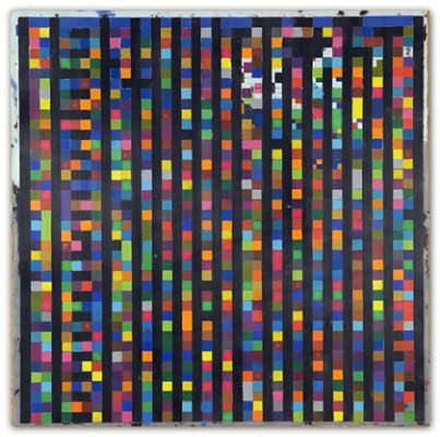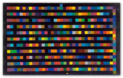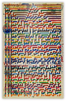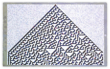 For my most recent work I’ve written a JavaScript routine that produces a set of cellular automata. Those unfamiliar with the term “cellular automata” will find a wealth of information about them on the web, but typically they are grid-based formations where the identity of each successive element is dependent on the identity of its immediate neighbors.