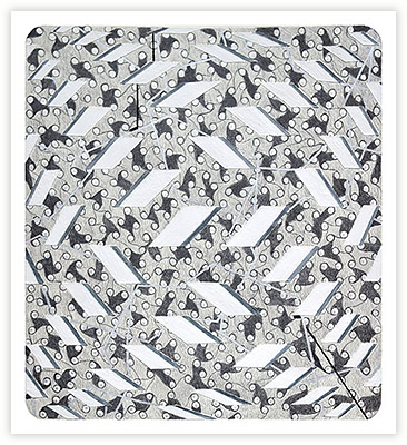 Materials add another dimension to this concern for the organic and synthetic (i.e., coal slag, glass, metallic paints, etc.) and are either real surfaces in the paintings or are visually reproduced. A variety of materials, combined with the ways in which these materials are applied and manipulated, contribute to an overall engagement with the surface and visual tactility.