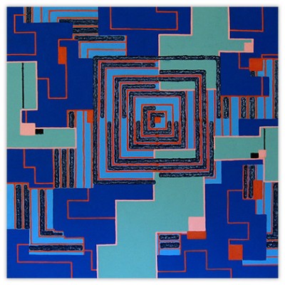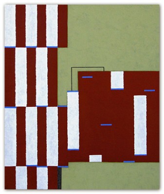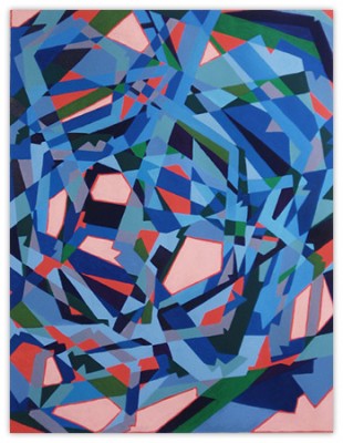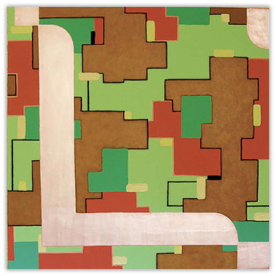 In as much as painting is, first and foremost, about relationships, these works are primarily about the relationship of the organic and synthetic worlds. I have long been interested in the way in which we live this dichotomy. The work presents this relationship through a vocabulary of odd shapes (both organic and geometric) that focus on color, space and surface/tactile qualities that challenge perception and engage the viewer on a multitude of levels, in particular, the way in which memory and experience translate into color and form, functioning both as mental image and as sign.