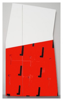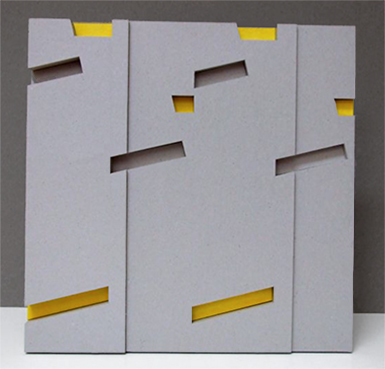 I abandoned canvas for cardboard. The choice of this support enriches possibilities through the interplay of cutting, folding and layering.