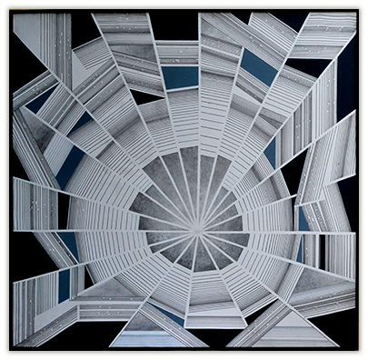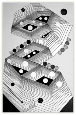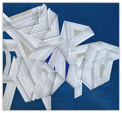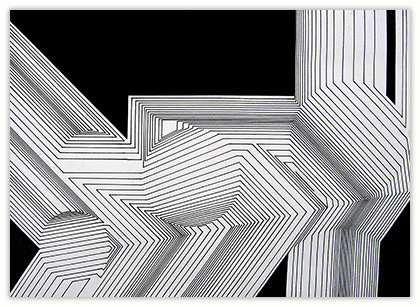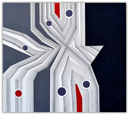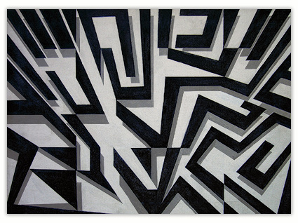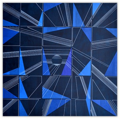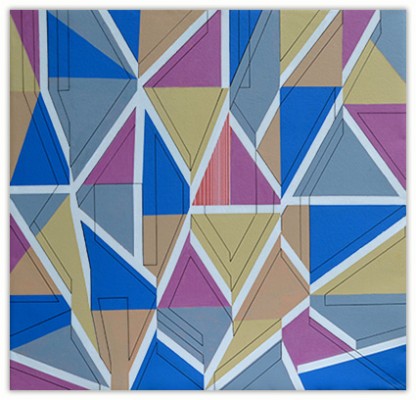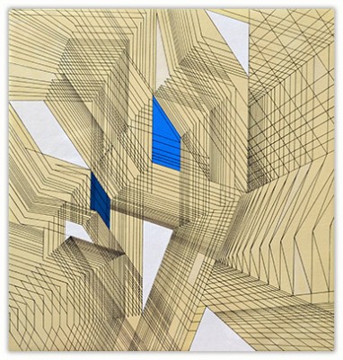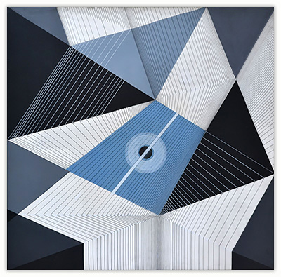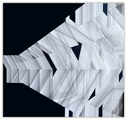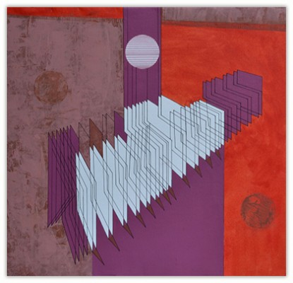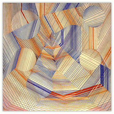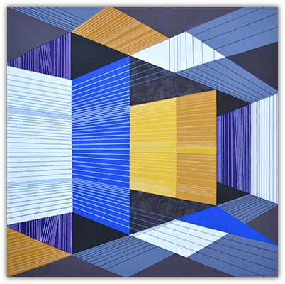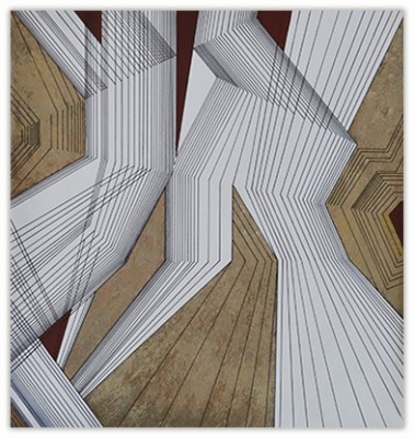 The process through which these works are created is very simple. I just put a few parallel lines anywhere on paper or canvas, and then with these lines I just PLAY. I allow lines to move in different directions and to develop in their own way freely in space. Creating imaginative space within space with the help of lines and colors is the main objective of my works. However, in order to control any haphazard growth, certain parameters such as vanishing point or guidelines with multiple options are provided, and lines are fully free to interact with other lines in space. Sometimes I do use mathematical proportions to fix their internal relationships in space.
