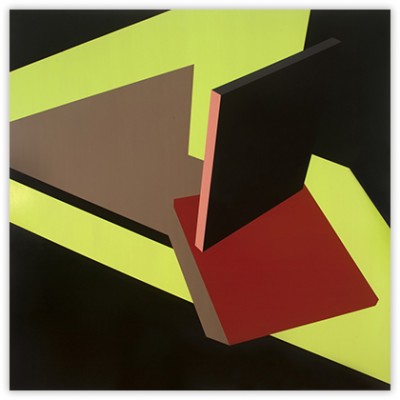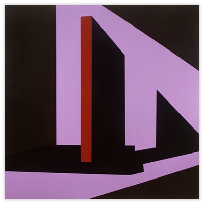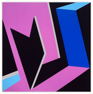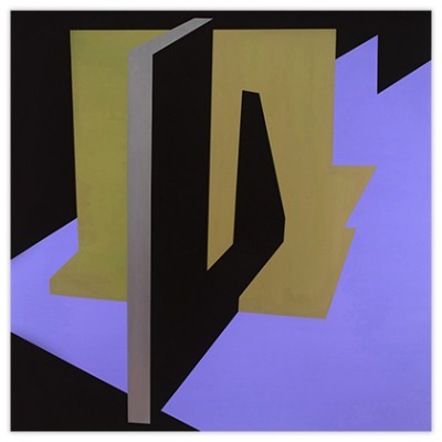 Geometric form and color are utilized as an organizing tool for creating spatial ambiguity and tension in my practice. I focus on figure-ground ambiguity and reversal to create energetic pictorial spatial readings. Through investigating reflective and reductive color schemes and surface qualities, I create scintillating visual effects that are comparable to the reflection and refraction of changing light on modern and contemporary buildings made from high-gloss glass and polished or patina metals. Newly available acrylic paints, pigments and mediums are frequently experimented with in order to further develop the material concerns of my paintings in uncharted directions.
