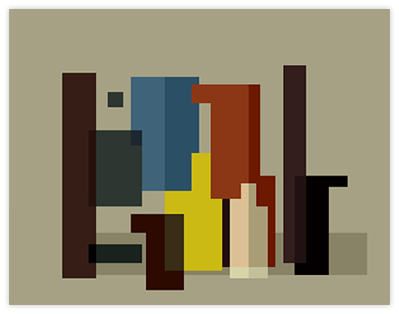 I was just having fun one day when a new experience ignited my passion. The playing field was a graphics program in my computer, and the event was an electronic reduction of a painting, Fernand Leger’s Three Musicians, which became a patchwork of colors. I immediately translated the concept to canvas, and have since produced a series of images.