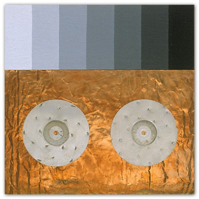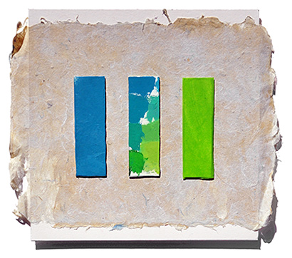 Within three bodies of work—paintings, collages made from Japanese woodblock prints, and assemblages from found industrial objects—I explore the sensuousness of oil painting, the feel of three-dimensional sculpture, the craft of printing, and the freedom of expression as vocabularies in my personal geometric language. My pieces speak about choice in the spontaneous chaos of creation.