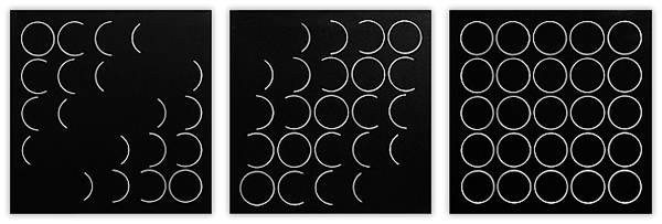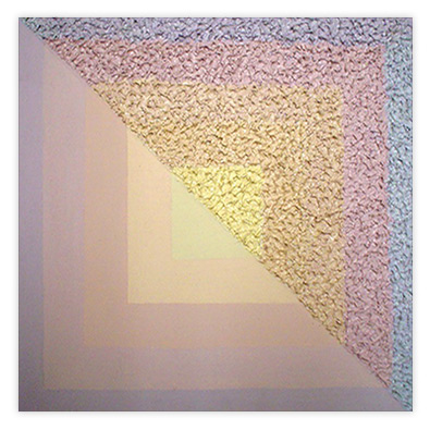 Why geometry? It is a language all my own that suits me, stimulates me, excites me, and at times, satisfies or frustrates me. To me, the forms incite conversations; subtle dialogues fill the composition. Through the use of color and texture, I can speak about contrast, such as yin/yang, black/white, flatness/texture, comedy/tragedy. These are indirect evocations of my experiences, always subconscious, but in retrospect, they are strongly present. The serial works tell a story, for example, morning to evening, frustration to tranquility. Light is the narrator of all my stories, form is the subject, the series is my structure.