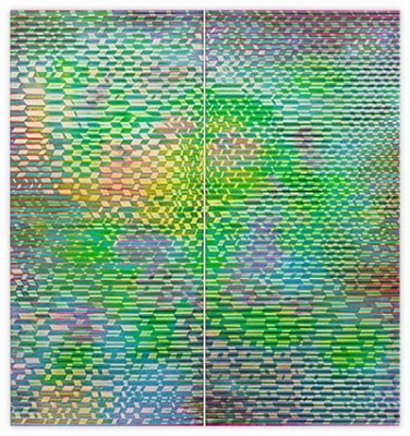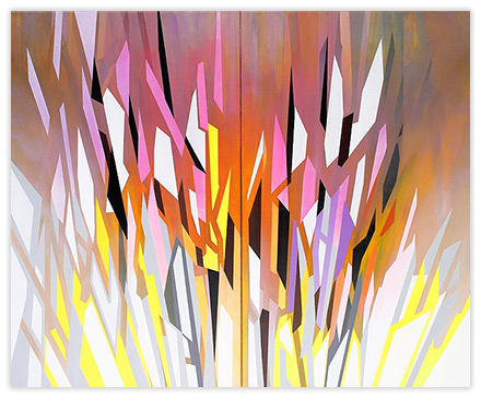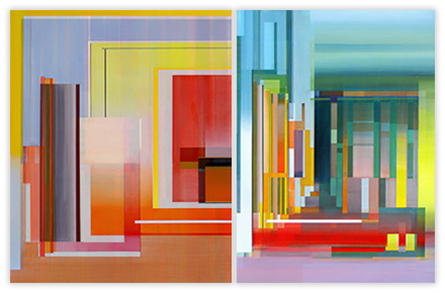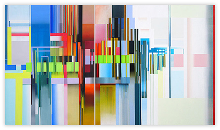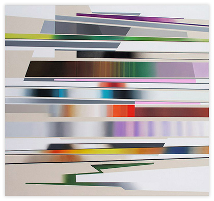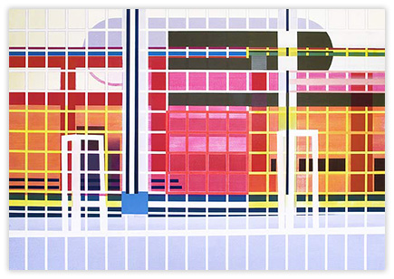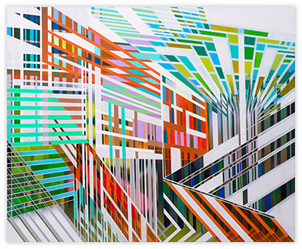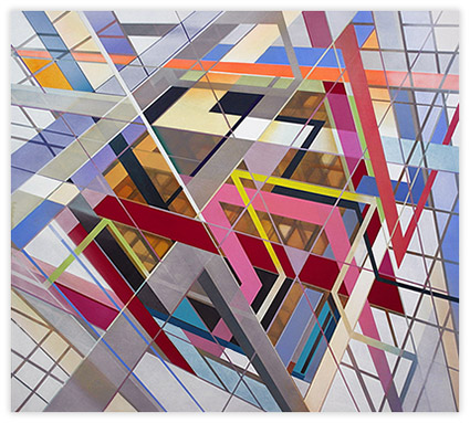 Every line is a plane, painted in layers on a ground, that depends on color and co-location to form characteristic patterns and to build a planar system that might suggest a deeper space. A challenge and pleasure for me is to compose with lines until the eye of the beholder recognizes or associates something different from my own point of view. This often marks a good beginning for a rich conversation about visual perception.