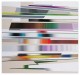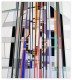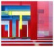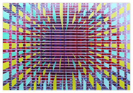 Both the Etch A Sketch technology based on orthogonal elements and my carpet made of crossing vertical and horizontal yarns gave me an early impulse to use this clear concept to make geometrical paintings ever since I became a student of fine art. I began to paint using a limited inventory of basic forms (lines) to develop complex, colorful systems. I preferred to use tape to achieve hard-edged shapes. It reminded me of the mesmerizing computerized images of the early PC era.