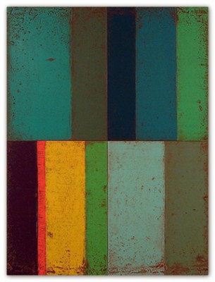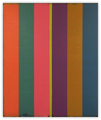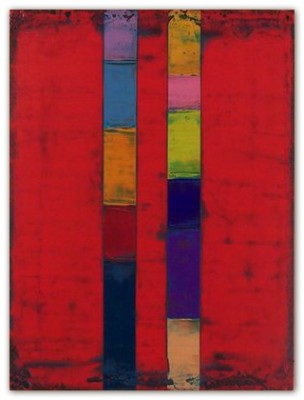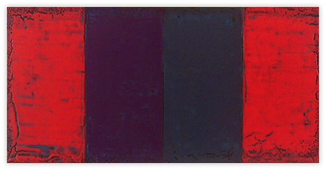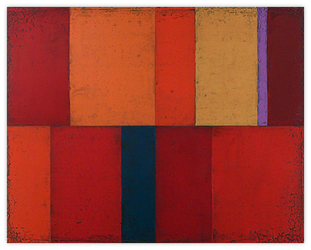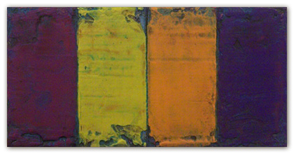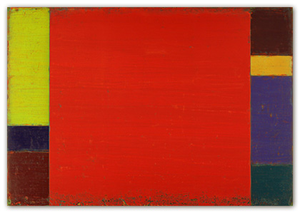 Color operates in this work and in the world as a kind of pure energy—dynamic, capricious, evocative. The surfaces emphasize the sensual nature of the painting process, translucent layers accumulating to create a specific timbre. The simple iconic configurations inevitably imply archetypal tensions and dualities as interdependent aspects of an animate whole.