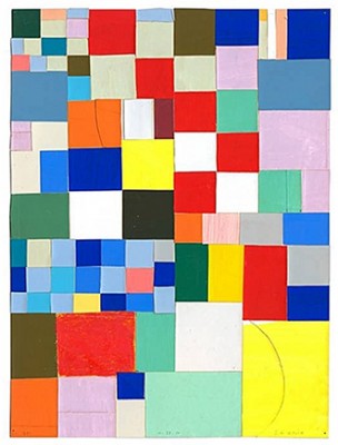 I think of myself as a painter; however, I have been making these small cut, torn, gouache painted and pasted paper collages now exclusively since 1997.