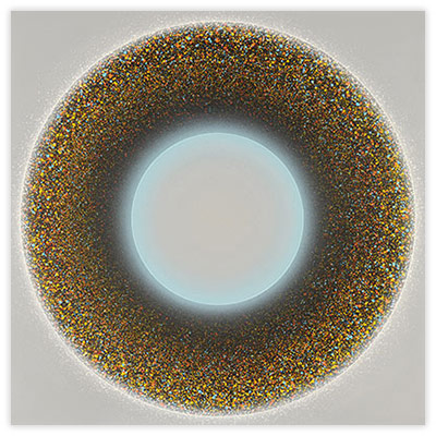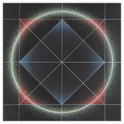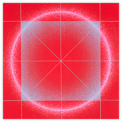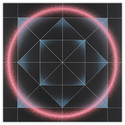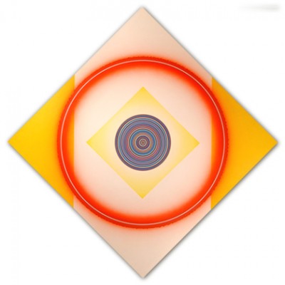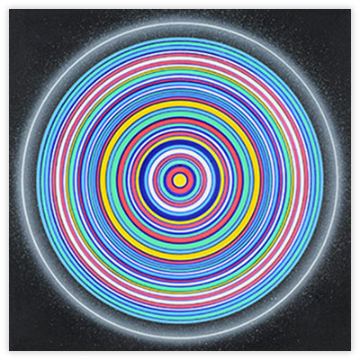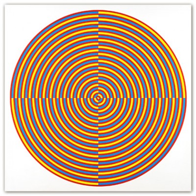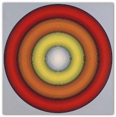 My work uses geometric forms, most often the circle, because these allow me to create the visual impact that I seek. There is no philosophy or theory involved. I use identifying numbers rather than literary titles for my paintings because the artworks are not meant to refer to anything outside themselves