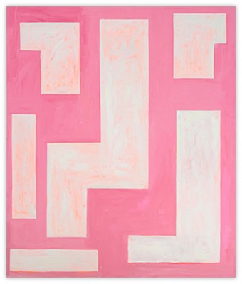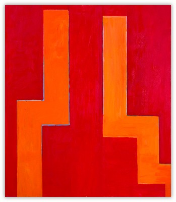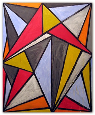In my paintings the forms are locked in this flux. It is part of the dynamic of the work and meant to be so. In this work, figure and ground, positive and negative are all equal. There is a suggestion of volume in the form, which continues to interest me as I work towards depicting a kind of biomorphic Cubism.