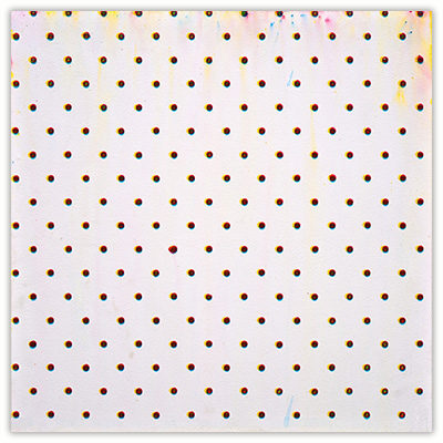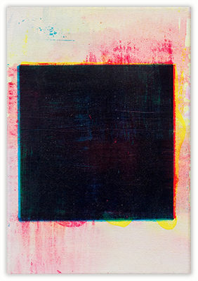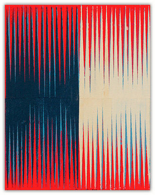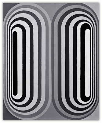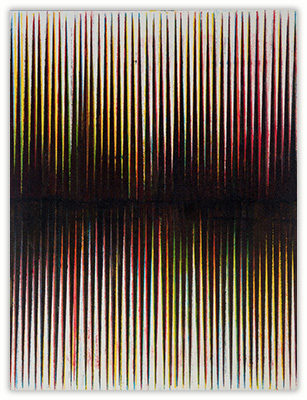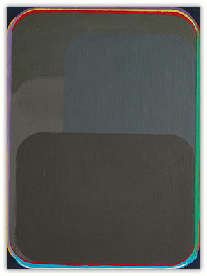 As well as working with relational shape, I also work with pattern and system. I have bodies of work that use geometries as a means to generate a pattern, usually optical. In these works I apply paint by overlapping layers of transparent and saturated color to produce a result close to black. I combine a systematic approach of application using stencils with a shifting registration between the layers of color.