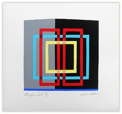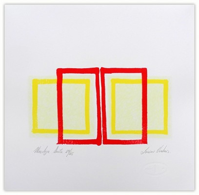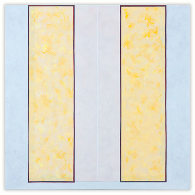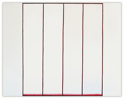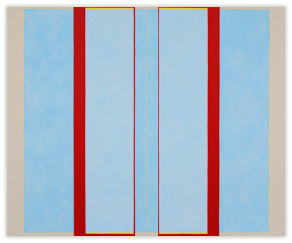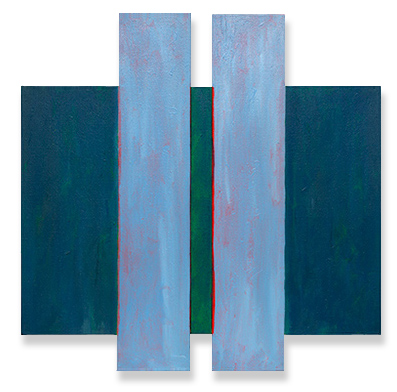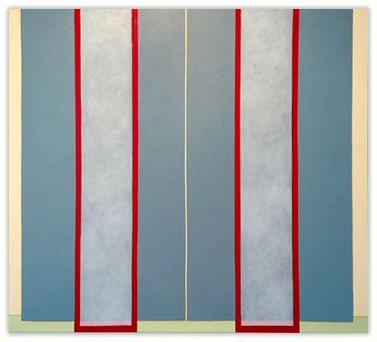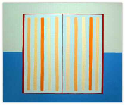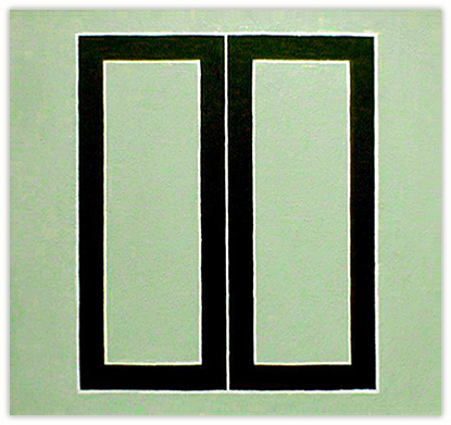 I use geometric forms in my paintings because we automatically start to “read” the mathematical or non-literal visual possibilities. This creates a two-way action between the painting and the viewer, whose individual life experience combined with the artist’s production set off a sort of visual array.