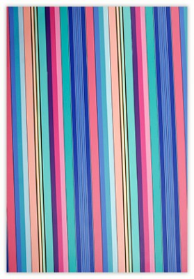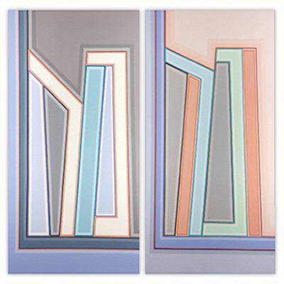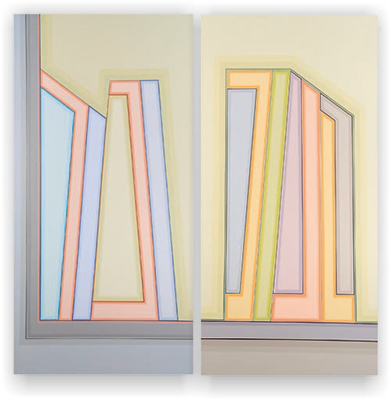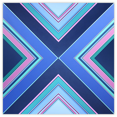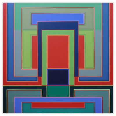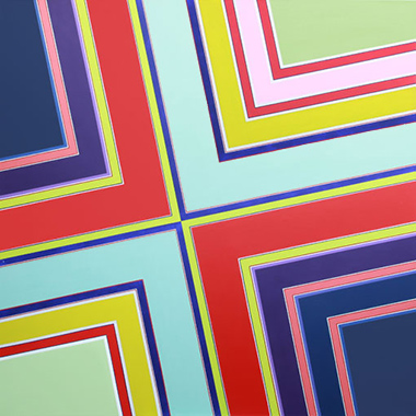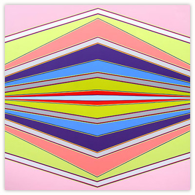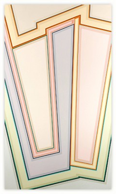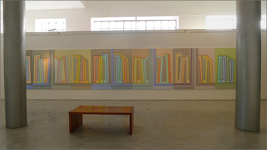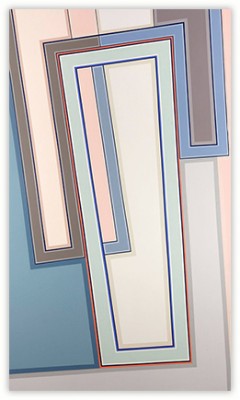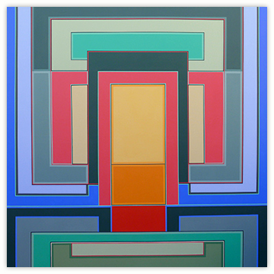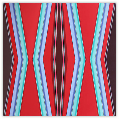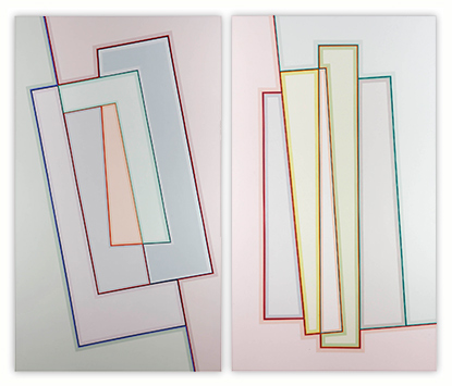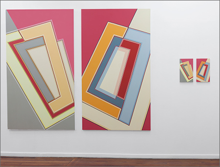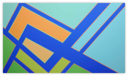 I became a geometric painter through a long evolution. Initially I was making work that resembled abstract expressionism, using lots of paint, obvious brush strokes and drippings. Next I began to clean up the images, combining color fields with textured ones. Later I used only color fields, hard edges and lines in my works. I started making structured compositions in series. At first I used only squares, then, in turn, parallels lines, symmetrical compositions, and diagonals. Now I’m making orthogonal compositions once again.