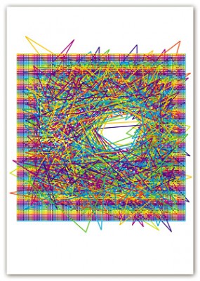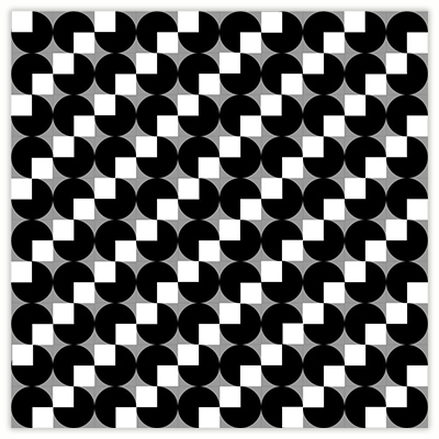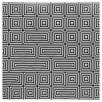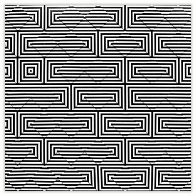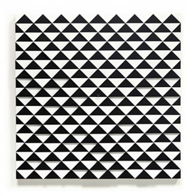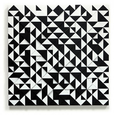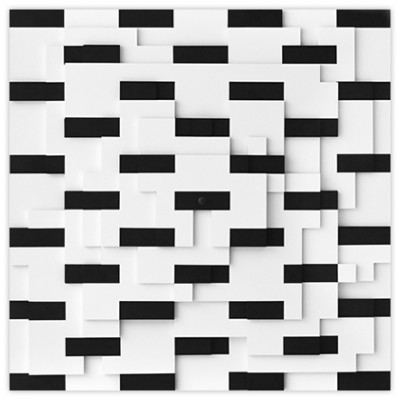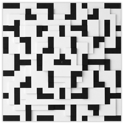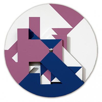 In the more recent Geo-Movers, I applied the results of experimentation with identical elements and their transformation potentials. In this work, geometric constructions are formed from several layers—which can be seen as precise, compact, almost minimalist—either black and white or, by contrast, brightly colored. There is usually an eccentrically placed metal screw, which allows parts of the constructions to be rotated, and thus initially quite simple compositions, when set into motion, can display a wide range of transformations, from very subtle variations on the original set to very complex reconfigurations filled with crossings and turnings. Every alteration creates a new variation of the original image. A very important moment occurs as the viewer /participant takes part in these changes.