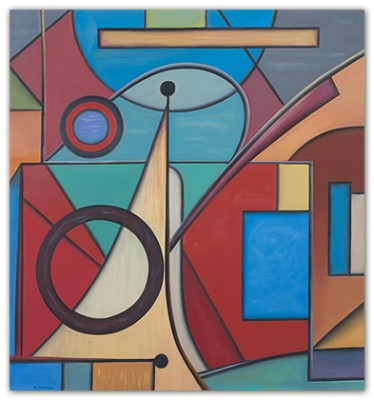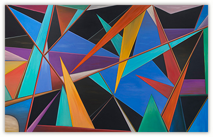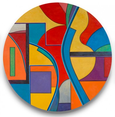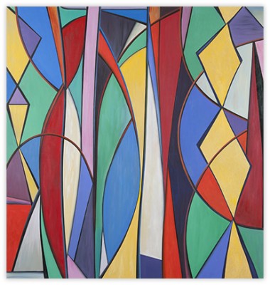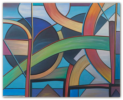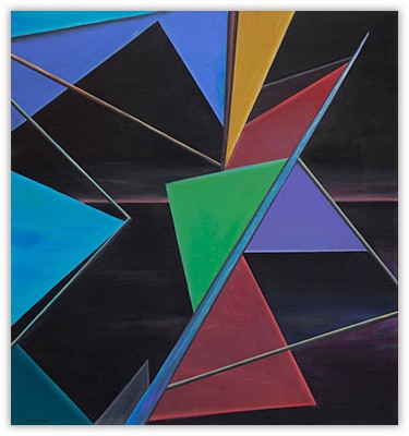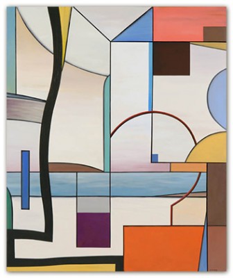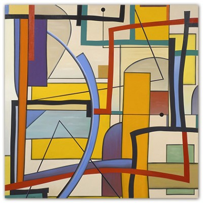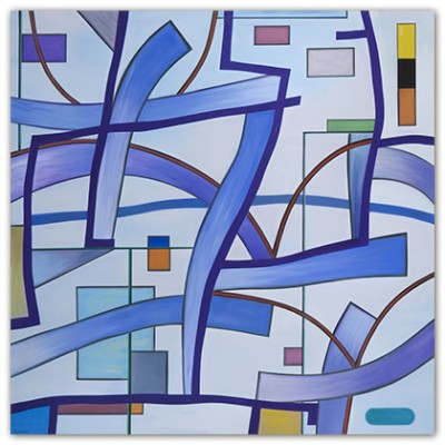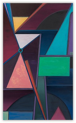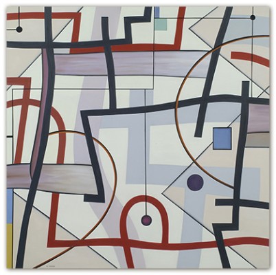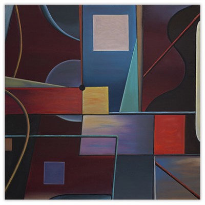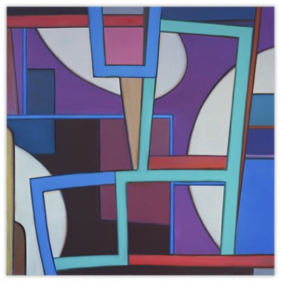 My paintings show my interests in formal composition. Strictly geometric shapes and flat colors are mingled with organic lines and amorphous color. They evoke an illusive space and thus allude to objects, landscape, even the figure. Yet they remain abstract, never specifically representing anything other than the painted surface. I want my paintings to be metaphorical in the sense that although they depict nothing abstracted, they are “as-if” alternatives to our experiences in the world.