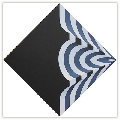 My working process involves a long stage of preliminary study. The final outcome is determined at this stage from the black outlines on the paper and drawings of the manifold possibilities for representing the illusory volumes. During the painting process, the sense of volume is heightened through an intensification of light and shadow, revealing a surface organic or geometric, concave or convex.