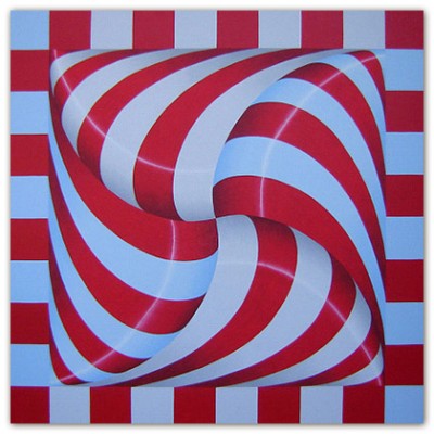 The curiosity aroused by my work comes directly from its internal contradiction: the valorization of the painting as a two-dimensional object versus the use of paint precisely for its feature most rejected by modernity—that is, for its capacity to create spatial illusion, here the sense of images projecting outward from the canvas as if they actually changed its topology.